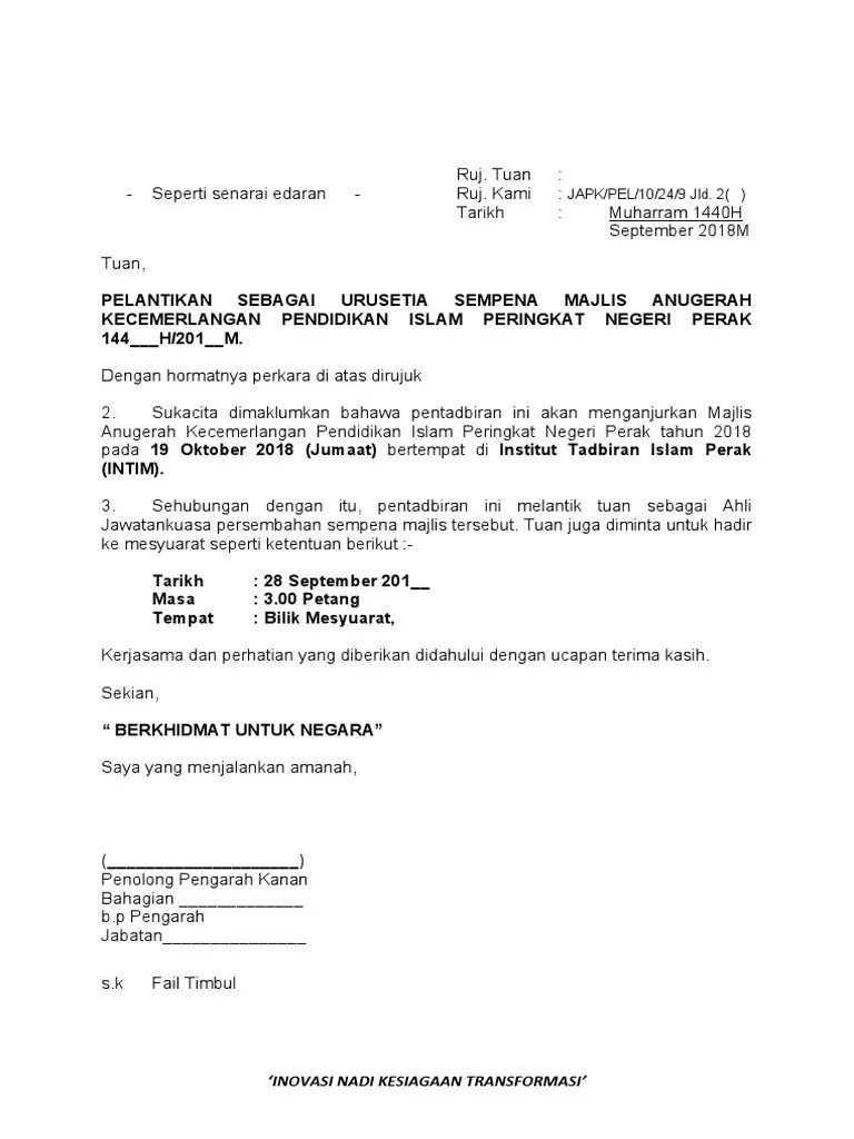 Contoh Surat Pelantikan Ahli Jawatankuasa - Surat Lantikan Ahli Jkkp Pdf